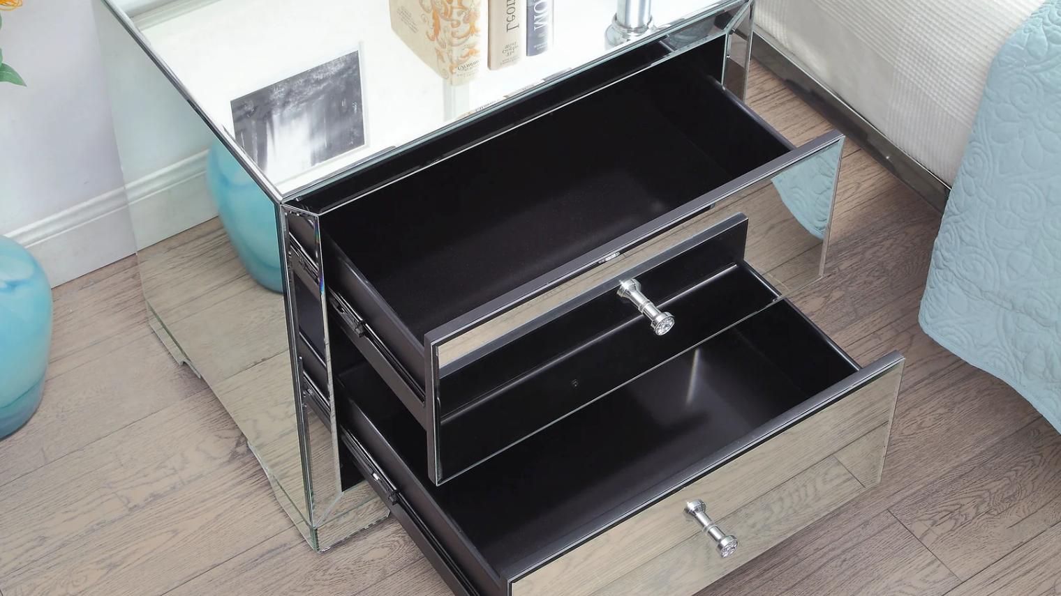 Transform your bedroom into a glamorous retreat with our mirrored bedroom furniture collection, where elegance meets functionality in every carefully curated piece.